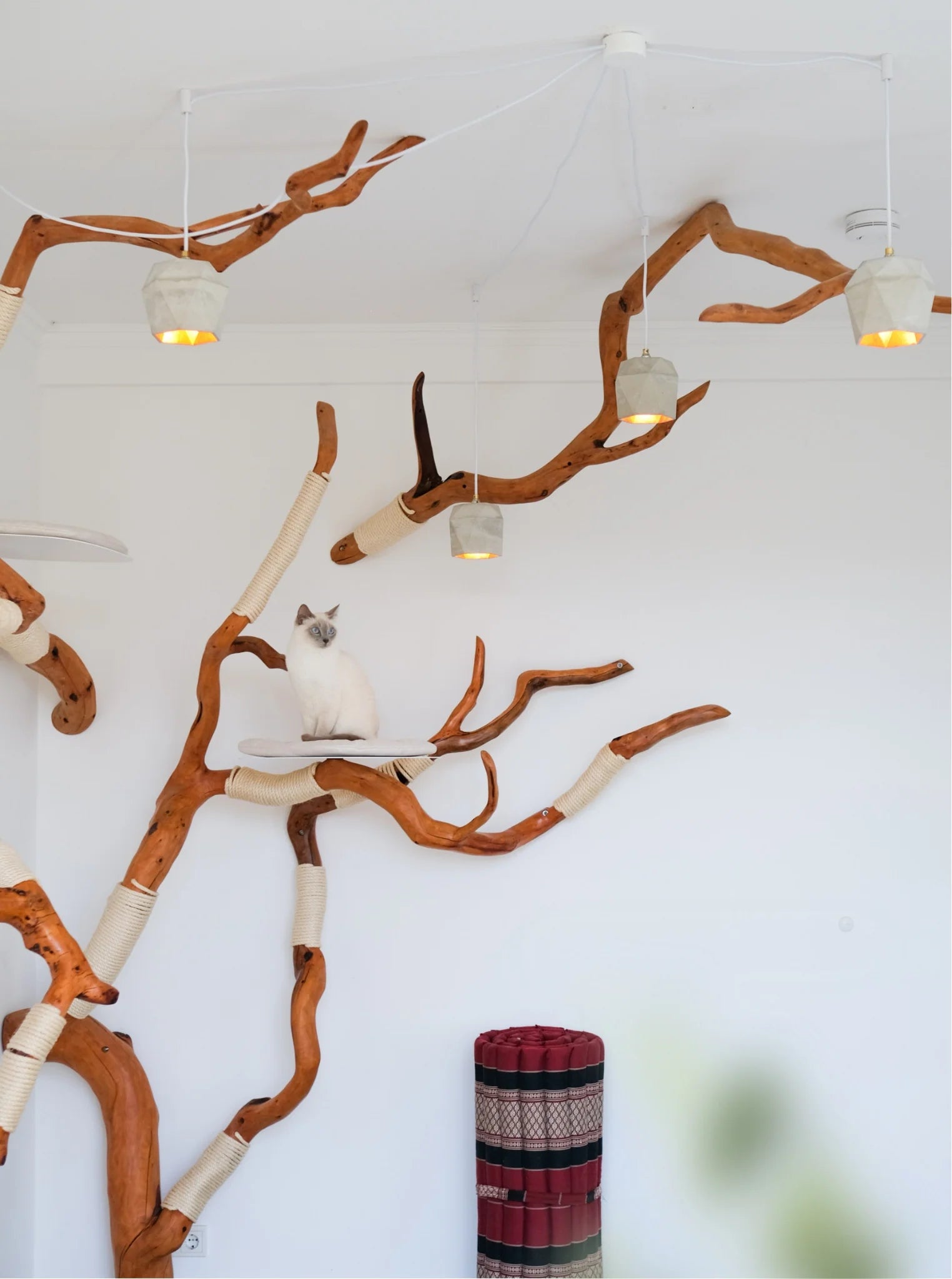 We also see our products not just as cat furniture, but as the completion of a more natural living atmosphere: in which people symbolically come back into harmony with nature. A living environment in which you can feel the overwhelmingly calming energy that emanates from nature and cats, day after day. Your daily anchor of positive moments of happiness.